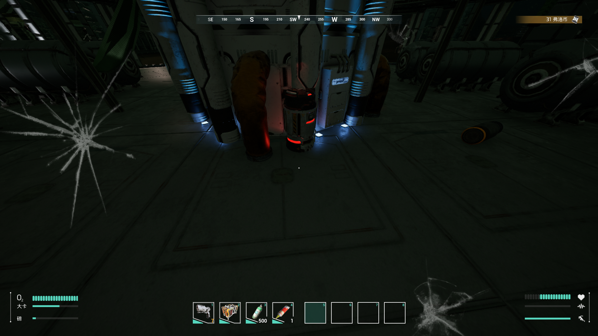 一开始在游戏的出生点,小编就体会到了一种阴暗低沉的氛围。阴暗的克隆人工厂,怪叫着的机械蜘蛛怪兽,加上低沉的BGM和迷幻的光影效果让人有种说不出来的紧张感。哎呀,这种紧张刺激的游戏氛围不就是我大展身手的好时候么?于是飞快地在出生点搜集了所有的资源,就正式进入了游戏。火星~我来啦!