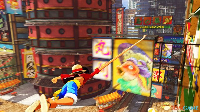这批《海贼王:世界探索者》游戏截图展示了游戏中监狱岛的风貌。可以看到这里拥有大量店家以及海军的驻扎基地,主角路飞可以使用类似蜘蛛侠的招牌动作在城市中的各个建筑物之间快速移动。