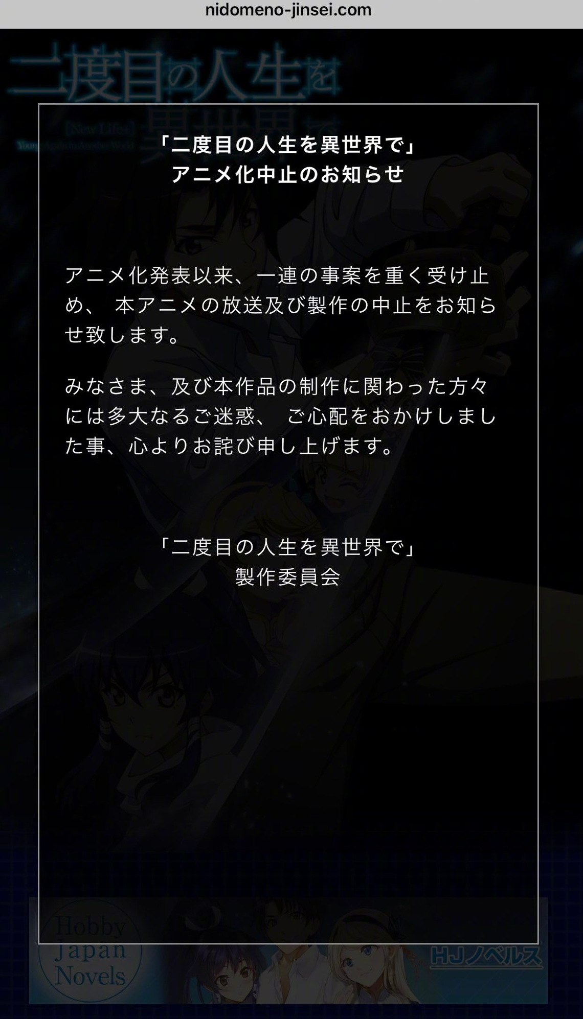 该作于5月22日确定动画化,同时原作小说还被引进中国。此消息一出,便引起了中国网友的愤怒。经过多方努力,引进小说已被紧急下架,在经历过参与动画配音的声优于6月6日集体辞演、原作者道歉、原作小说停止出版后。日前,负责制作动画的SEVEN ARCS正式宣布动画化中止。