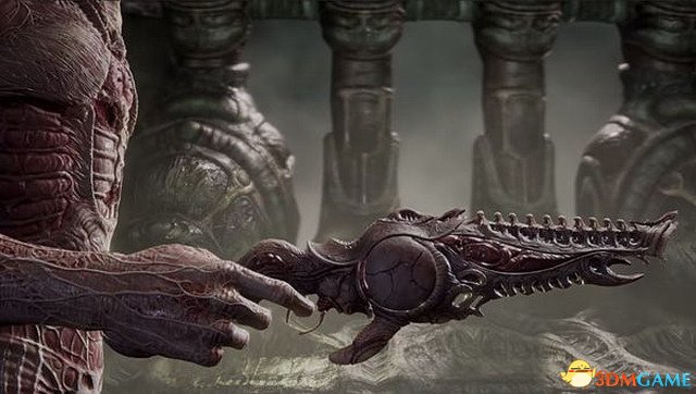 在该作中,主角所使用的武器也是由“血肉”打造而成,既阴森诡异,又有一种独特的美感,令人联想起《异形》系列的美术风格。