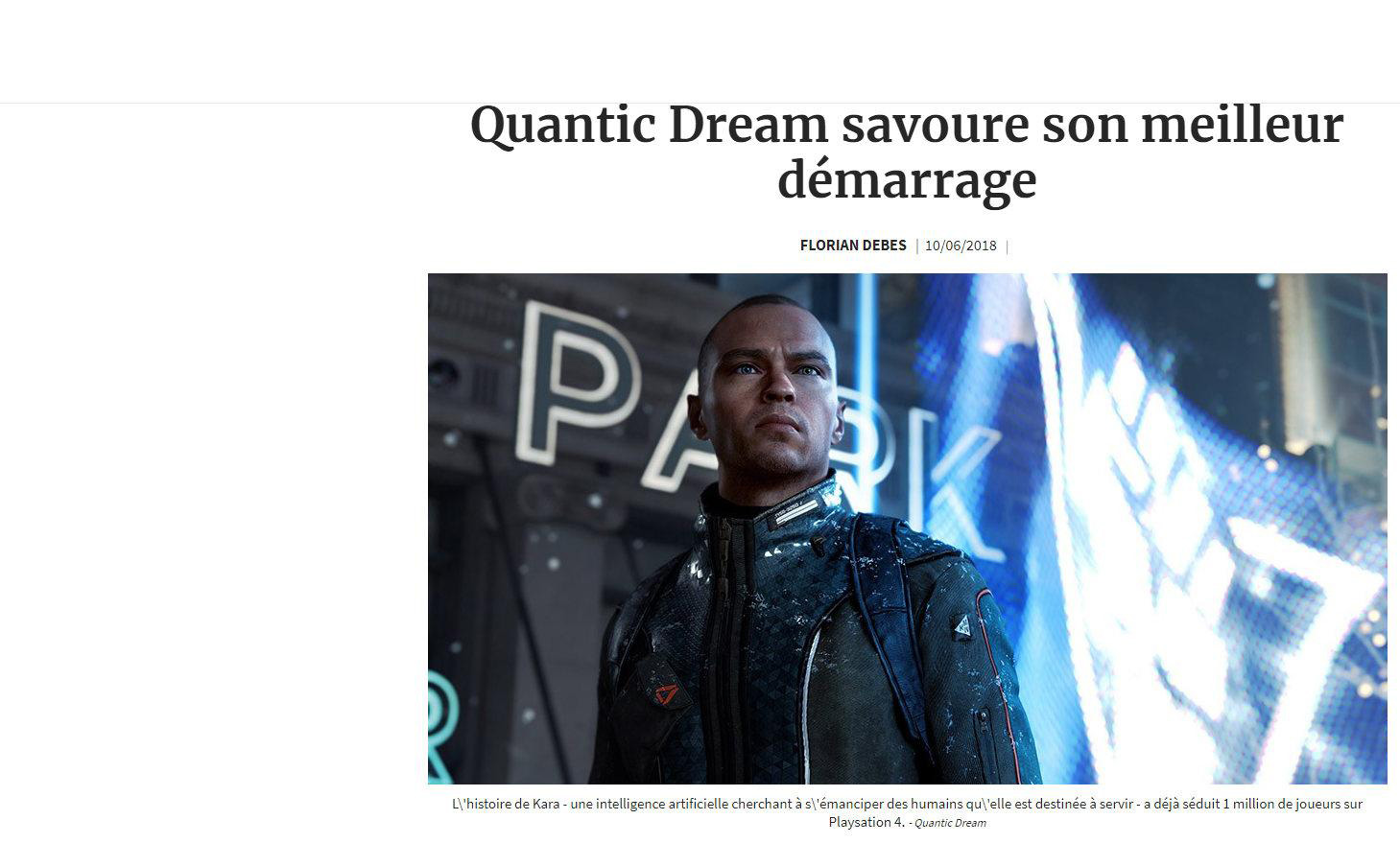 作为对比,Guillaume de Fondaumiere 表示2014年发售的《暴雨》用了5周的时间才达到了100万的销量,所以对于《底特律 成为人类》来说,两周销量突破100万是一个不错的成绩了。