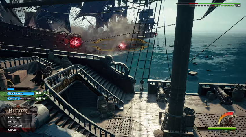 “加勒比海盗”IP最早曾出现在《王国之心2(Kingdom Hearts 2)》中。本次的预告片展示了船只海战的场景,并且似乎是“加勒比海盗”世界独有的玩法系统。