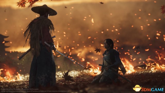 开发商借鉴了大量日本武士电影,演示里Jin Sakai与Masako的刀剑对决,旁边飘絮的红叶即完美展现了这种设计,而且红叶还是开发商为了隐喻主角所采用的特别设计,非常诗情画意。