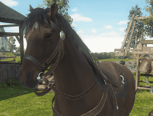 此外,《逆水寒》还在全面内测的庄园中实装了马厩。在庄园里建造马厩,你拥有的坐骑就会出现在马厩里,可以割牧草喂它们,并且和它们亲密互动。