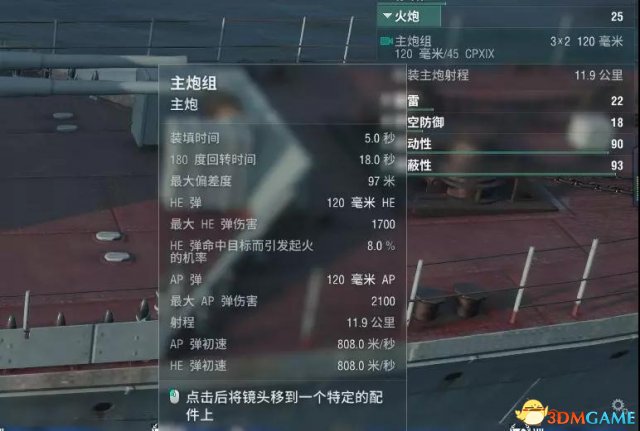不仅如此,加札马达不大的舰体上还挤满了可怕的武备。首先是数量超多的120主炮,偏快的射速在加札马达与敌人互亮距离时显然更具优势。同时,扎加马达还有一个隐藏炮击buff,她的2号与3号炮塔可以实现360度旋转,配合还算不错的炮塔回转速度,绝对让不少同级战舰汗颜。