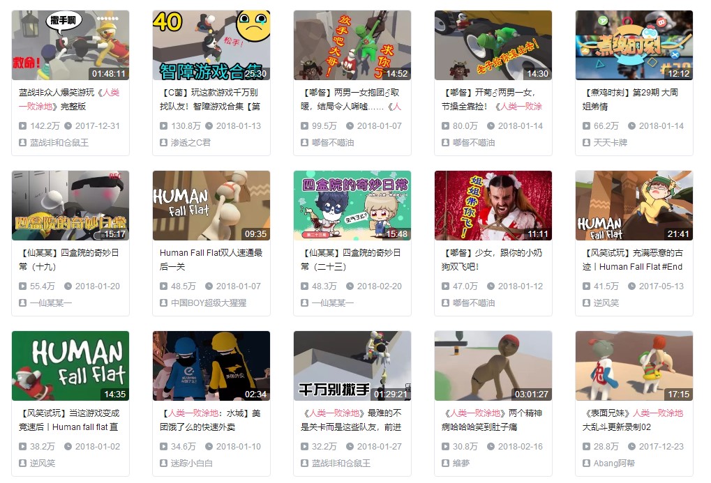 但是,加入了多人模式之后,《人类一败涂地》迅速在各大直播平台和游戏视频平台火了,拿B站来说,播放量超过30万的视频就有十多个,这对于一个外来游戏而言是很少见的。