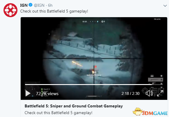 IGN今天为我们分享了《战地5》E3多人对战4K 60FPS演示,为我们展示了游戏狙击枪玩法和陆地战内容,从视频内容来看,《战地5》对二战战场真实还原,音效和画面都是业界顶尖。这张地图不出意外设定在挪威的纳尔维克。