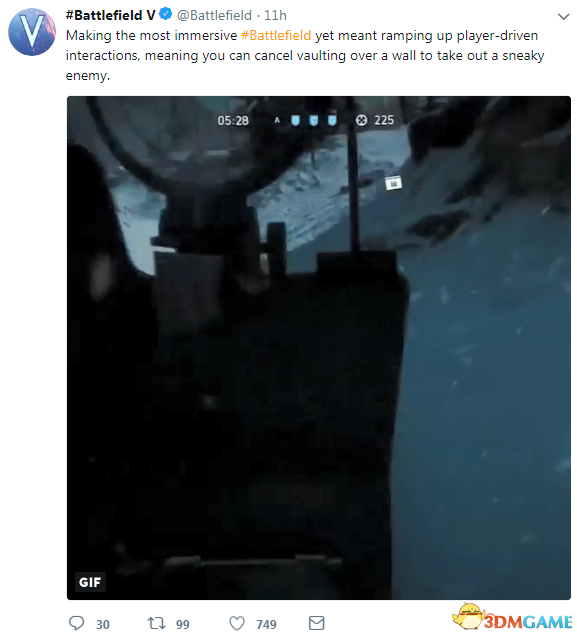 《战地5》:打造最具沉浸感的战地,意味着要加强玩家的互动玩法,你可以取消翻墙干掉一个阴险的敌人。