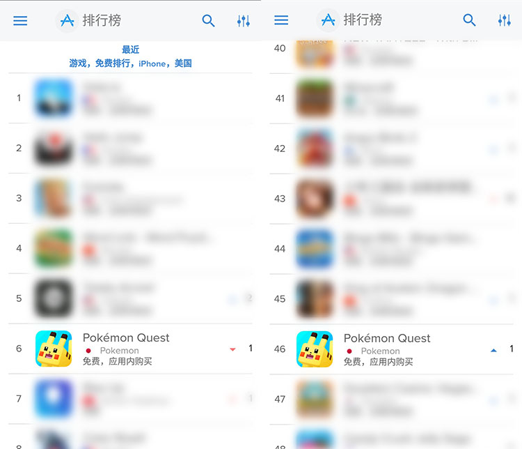 根据App Annie提供的榜单信息,手游上线近一周后,截至到7月3日,《宝可梦探险寻宝》在App Store免费榜排名回落至第6名,而Pokémon GO为26名,领先优势明显;不过畅销榜上《宝可梦探险寻宝》只排到了第46名,远远落后于Pokémon GO的第3名,产品付费深度还有待挖掘。