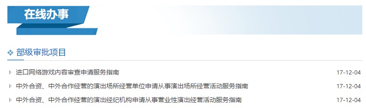 据GameLook了解,文化部6月份获得备案号的国产网游实际为在暂停备案前主管部门已受理产品,目前国产网游新游戏备案申报仍然处于关闭状态。同时,在中国文化市场网在线办事栏目中,依然只有“进口网络游戏内容审查”。据文旅部此前公布的说法,此次国产游戏备案关闭,主要原因是“机构调整”。