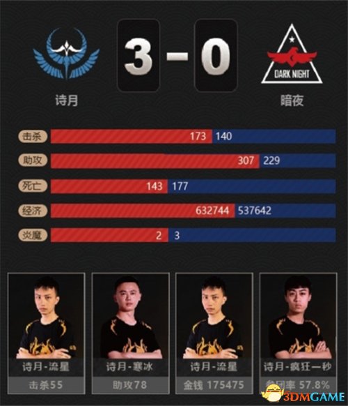第二组比赛,虽然暗夜战队竭尽所能压制诗月,但是诗月战队善用马岱作为强势输出,准确把握团战时机,最终3:0零封暗夜战队,抢下最后一个MPL参赛资格。至此,升降级赛落幕,执念暗夜重归MPL梦碎,只能于下个赛季卷土重来,再次挑战。