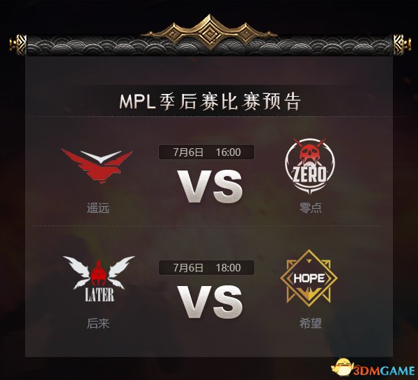 2018MPL夏季赛决赛将于今日16:00鸣锣开战,季后赛四强战队:遥远、后来、希望、零点,将向夏季赛冠军发起最后的冲刺!