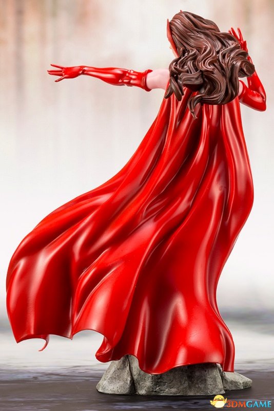 猩红女巫手办高约21 公分,将漫画中婀娜多姿的性感身材完美形塑,呈现出彷佛正在使用能力的姿态,红唇更散发出高雅的气质。红色手套、紧身衣和长靴都拥有亮面质感,粉红色的贴身服装刻画出写实的皱褶,披风的造型尤其精彩,复杂的发型线条加上精致披风让本作更添动态张力,搭配逼真的岩石地台,使本作收藏价值再提升。