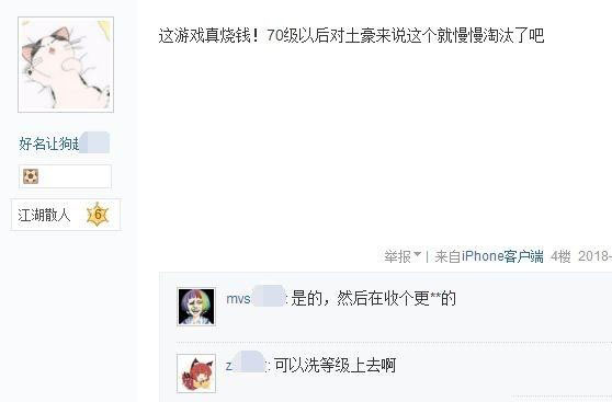 有网友表示,这钱烧的太不值,现在一个护手2万RMB,下个版本一旦更新,当前的神装马上就将变成鸡肋,这钱烧起来和打水漂无异。