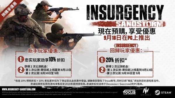 日前,Focus Home Interactive宣布战术射击多人游戏《叛乱:沙漠风暴(Insurgency:Sandstorm)》将于9月18日正式登陆PC平台,游戏包含中文字幕。