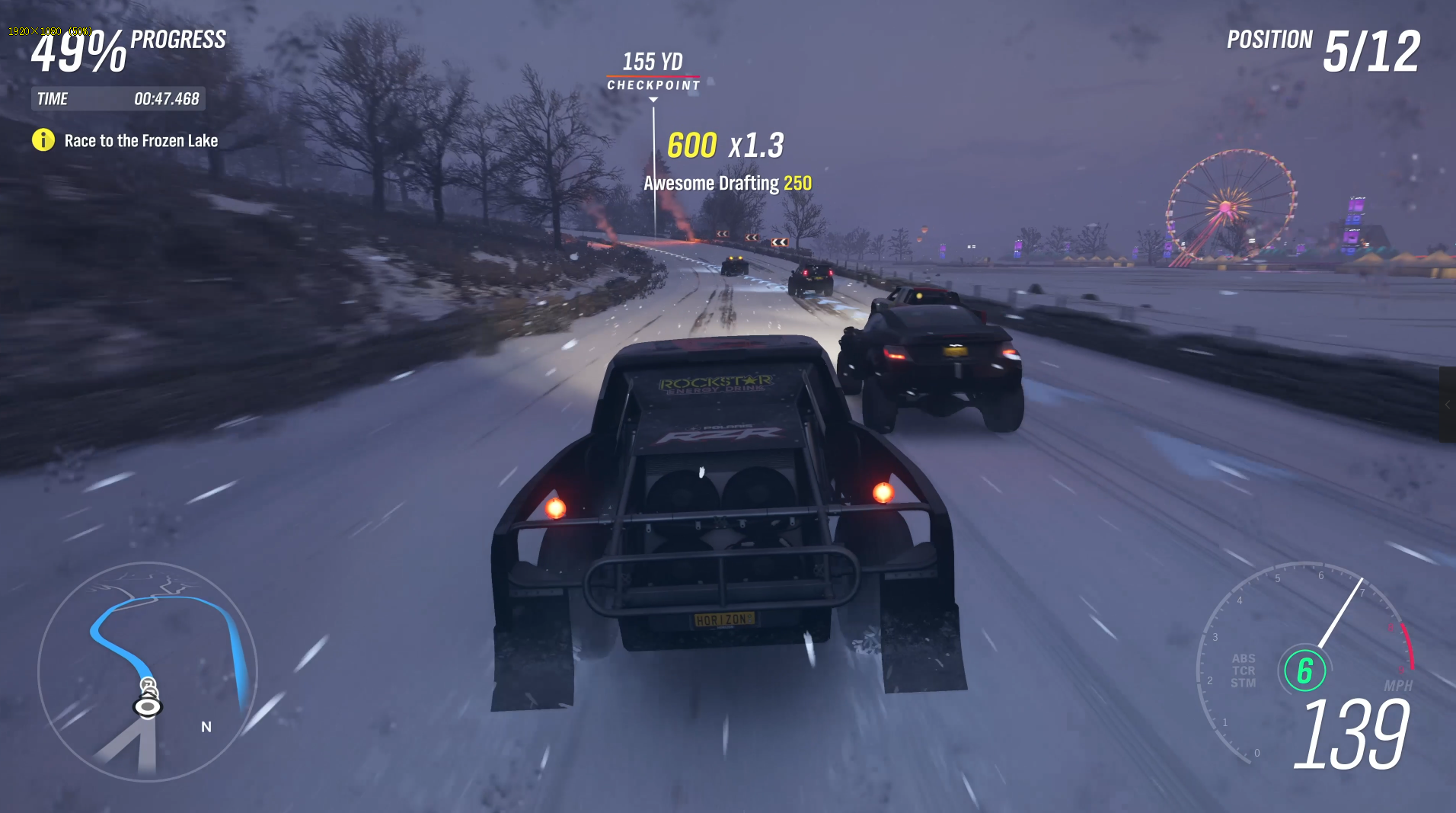 冬季的天气时而晴朗,时而风雪交加,有时玩家还会遭遇暴风雪。在英国地势较高的北部,玩家将可以体验到更为厚实的雪地,海岸线上的沙滩则会给玩家带来不变的驾驶体验,同时,爱丁堡市内及周边道路也不会受到积雪的影响。在冬季,玩家可以通过跨越结冰的湖面到达其他季节不能到达的地点,也能因此发现隐藏于不同地点的特殊奖励和新车型。在冰面上,无论玩家使用的是什么样的车胎,驾驶过程中都将会出现大幅度的滑行——光是这一点就很好玩。