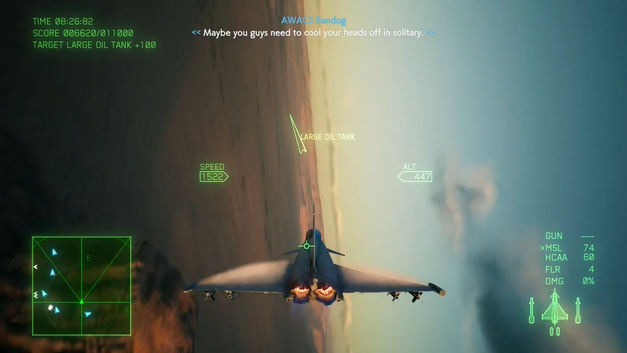 我们的主角和他的飞行员同伴扮演诱饵来吸引常规部队,但事实上他们的处境很危险,战斗过程中很有可能面临弹尽粮绝的境地,然而他们并不能使用附近的补给基地。这是一个典型的歼灭任务,玩家需要获得足够的积分在时间结束前突破一个据点。