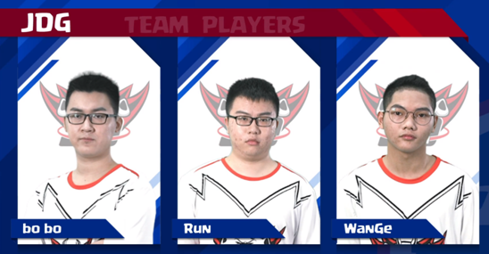 比赛第一场由JDG对阵LGD,JDG派出了bobo、Run、WanGe三名选手作为首发阵容。