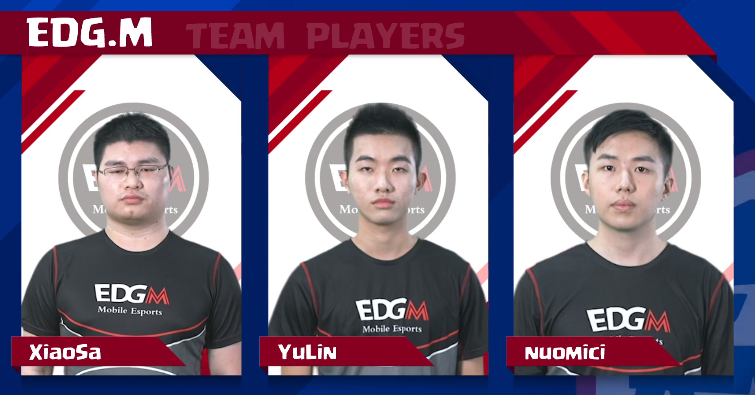 EDG.M的首发阵容为XiaoSa、YuLin、NUOMiCi。