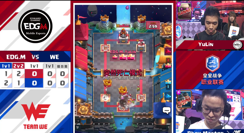 EDG.M这次启用了两名新人YuLin、NUOMiCi,作为队内的Key Player,被称为EDG.M一哥的Soloman却没有上场。不过,新人并不代表实力可以小觑,作为皇室战争职业选手,在游戏内都是6000杯以上的顶尖高手。