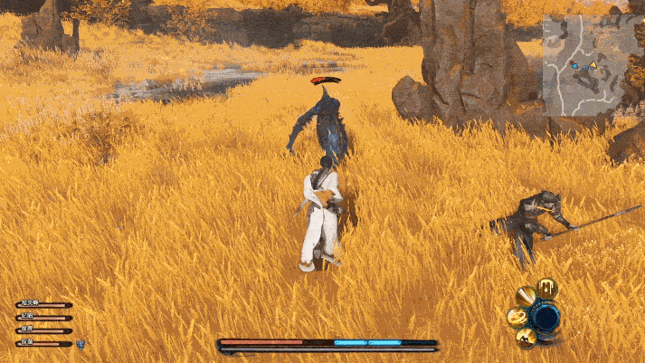 羽林:作为试玩版的最后一个Boss,羽林的实力不容小瞧,较短的攻击起手时间、超大的攻击范围、极强的攻击力都可能会让玩家头疼。但他也不是完全没有破绽,北洛只要耐力足够,可以用防御挡下羽林的大部分攻击,再通过闪避躲开他的跳跃劈砍,利用羽林攻击的后摇硬直时间持续对他造成伤害,再配合QTE成功后给羽林施加的减防异状状态,当羽林的元精低于20%后战斗就会结束。