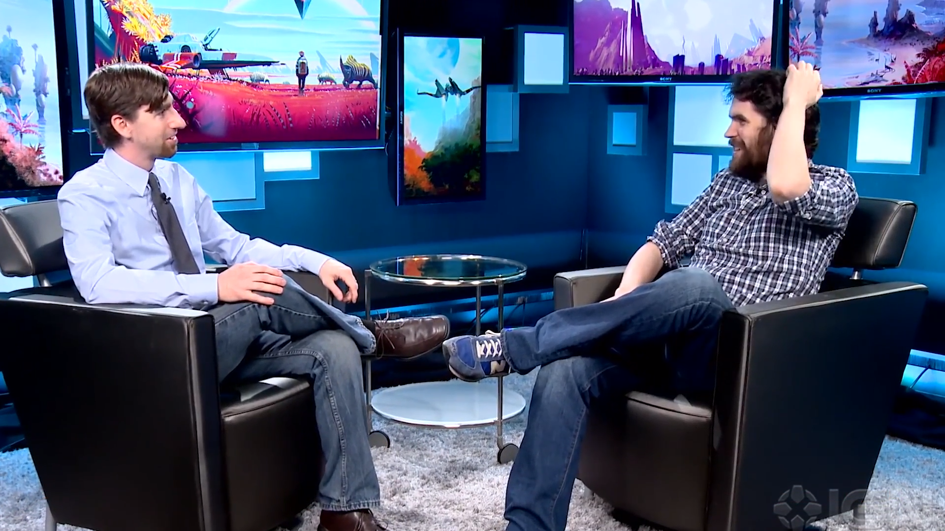 “人们现在很喜欢这款游戏。它建立起的幻想和理论都很宏大,对吧?玩家们现在说的都是:‘只管去做吧,兑现你们的承诺。’人们需要的其实不是我们之前参加过的那些采访,”他看着我,把我的话筒举到他面前微笑着说,“这样真的太好了。”