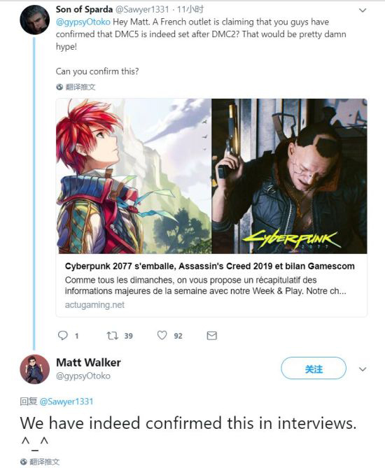 这一消息来自卡普空制作人之一马特沃克,近日在推特上回复粉丝问题时给出了确定的答案。