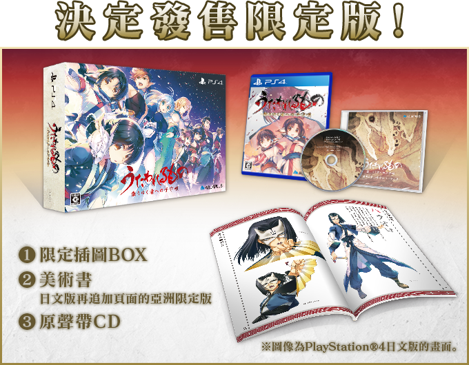 亚洲版原创的「豪华限定版」附有特制「原声带 CD」、亚洲版限定「美术书」。原声带 CD 包含主题曲等,共收录 29 首游戏音乐,「美术书」除了日本版原有的内容外,更是大幅增加页面,添加数十张本作原画担当甘露树的全新插图。另外,系列作第 2 作《传颂之物:虚伪的假面》、系列作第 3 作同时也是完结篇的《传颂之物:二人的白皇》,也预计于明年发售。