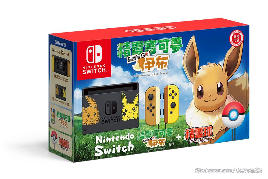 Nintendo Switch主机的特别组合将于11月16日起发售。组合内容包括:Nintendo Switch主机(内配皮卡丘/伊布色调的Joy-Con)、《精灵宝可梦 Let's Go!皮卡丘》或《精灵宝可梦 Let's Go!伊布》游戏软件,以及“精灵球 Plus”。