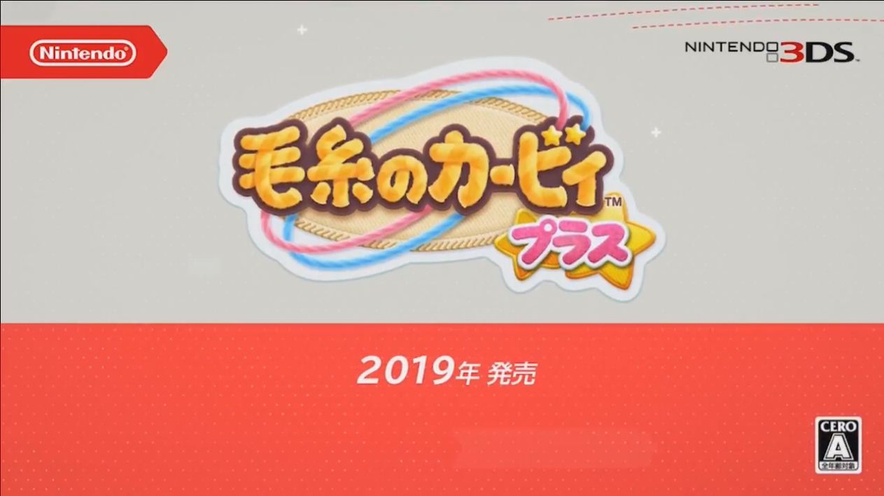任天堂将Wii的《毛线卡比》移植到了3DS平台,游戏名称为《毛线卡比Plus》,游戏新增关卡、动作。将于2019年发售。