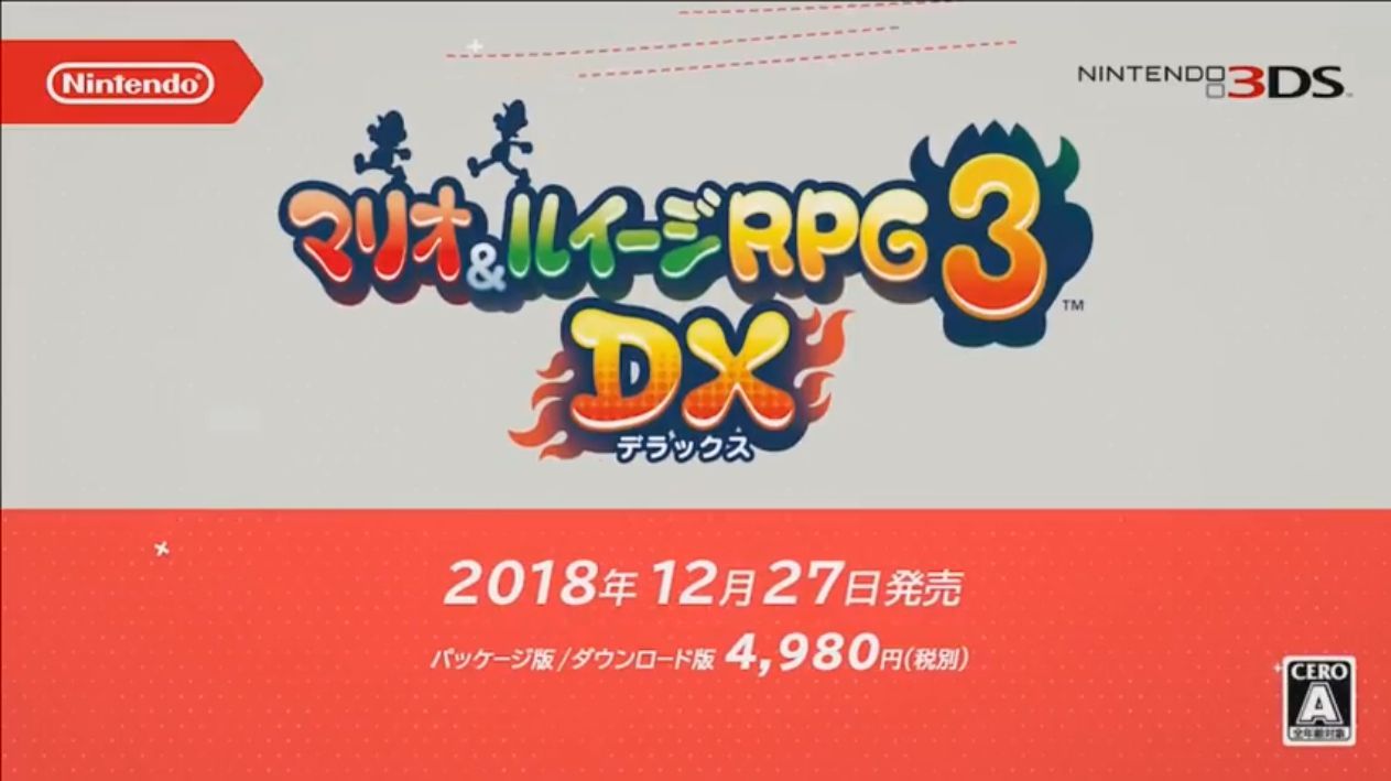 NDS平台《马里奥与路易RPG3》移植到3DS平台,新版本画面强化的同时,追加了小库巴为主角的新内容。游戏将于12月27日发售。