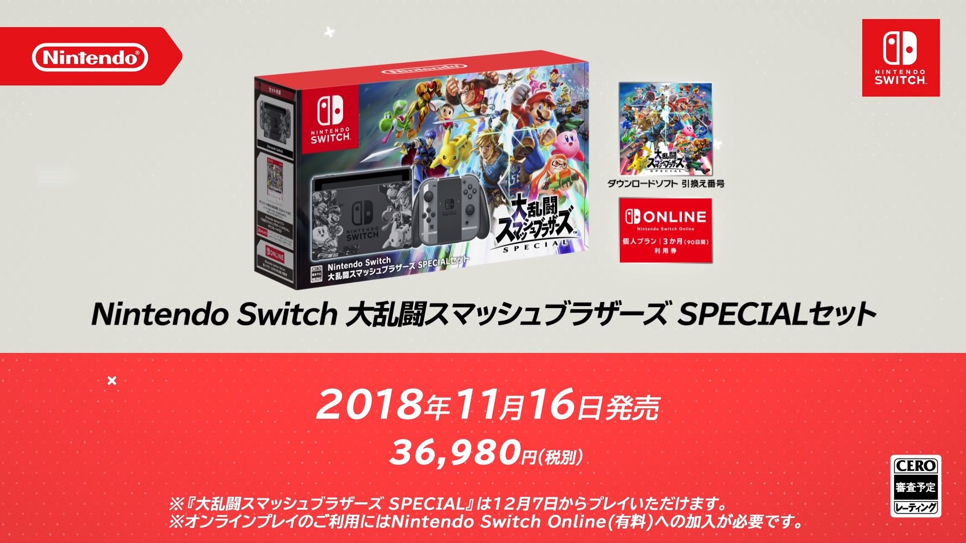 任天堂将为《任天堂明星大乱斗特别版》推出同捆版Switch主机,售价36980日元,将于11月16日发售。该版本包含数字版《任天堂明星大乱斗特别版》游戏,3个月的Switch网络服务使用权。主机和手柄采用大乱斗主题设计。
