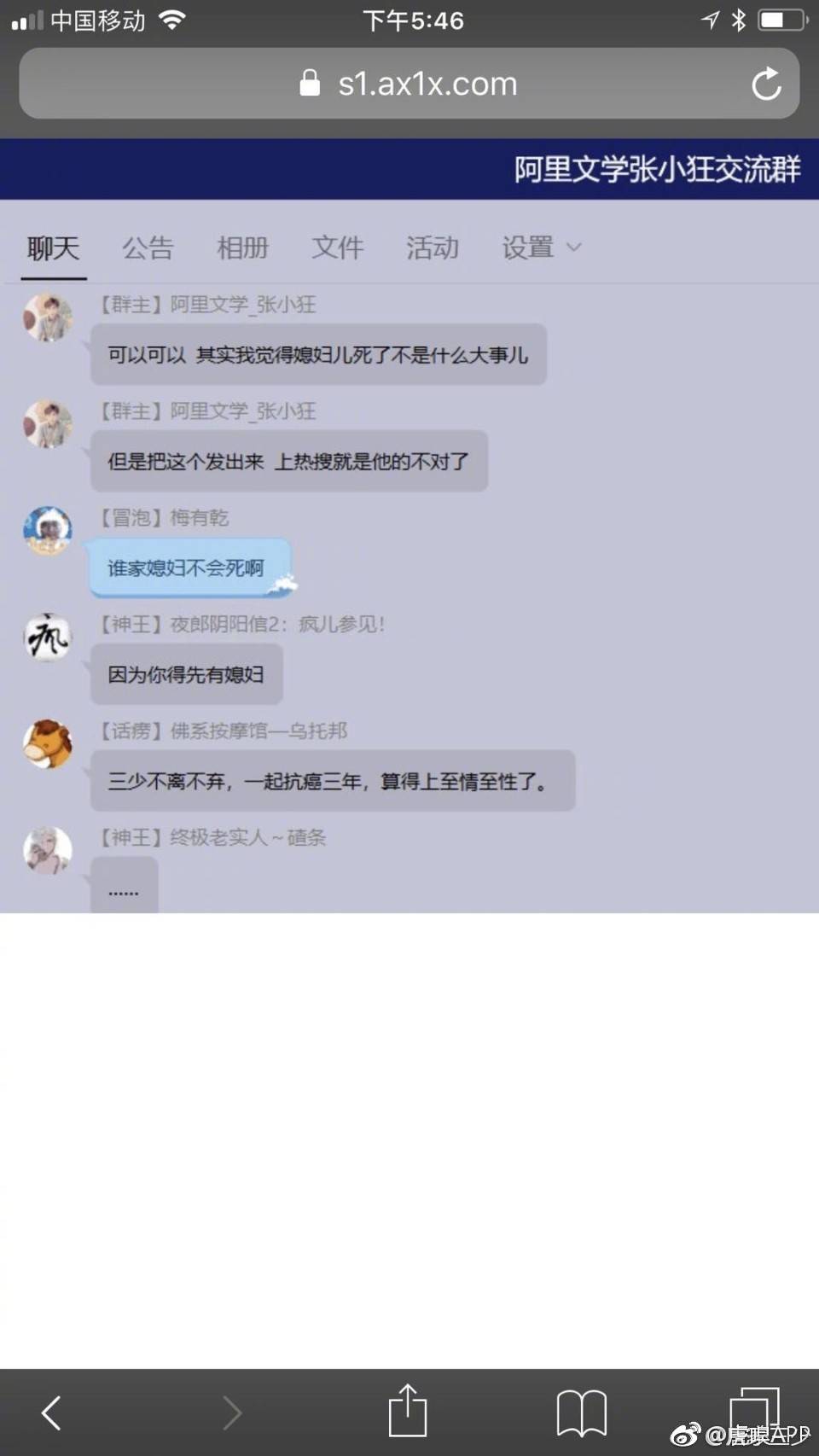 “这位阿里文学主编、这位阿里文学的作者我都不认识,辱我、骂我我可以忍让,但这二位辱我亡妻,我想问一句为什么?事情过去几天了,阿里文学也没有任何人找过我本人说明或道歉,所以我不知道这是否是公司行为?所谓人之初、性本善。我很想问问这二位,你们这是为什么呢?也想问问是否得罪过阿里文学?”