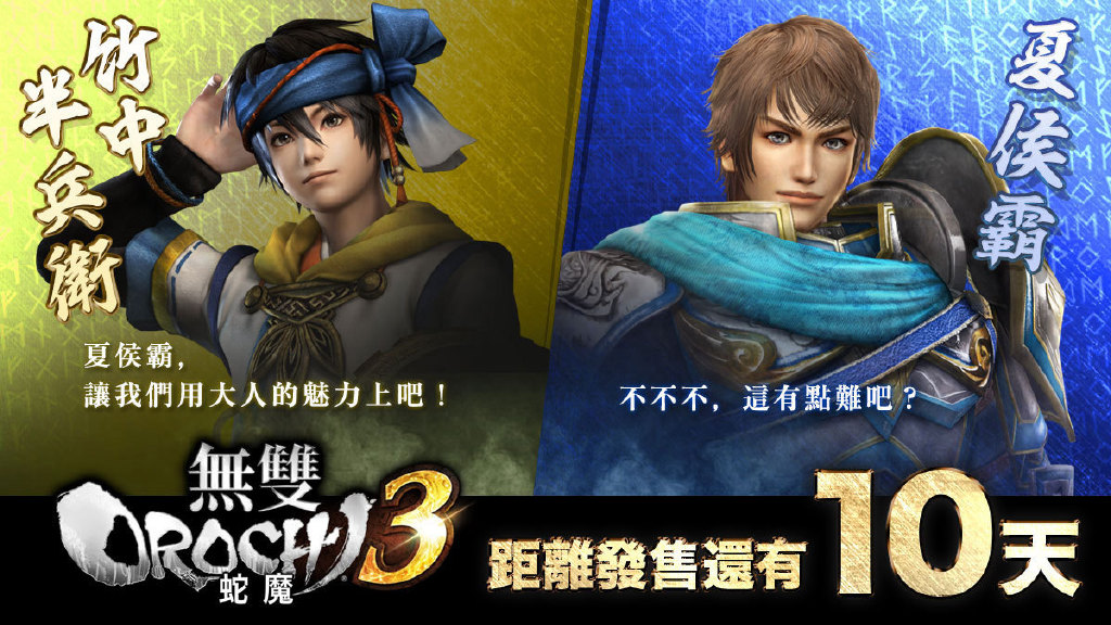 《无双大蛇3》官方今天为玩家带来福利,距离游戏正式发售还有10天时间,官方为我们分享了一张精美的手机壁纸,最后10天倒计时,每天都会更新一张壁纸。