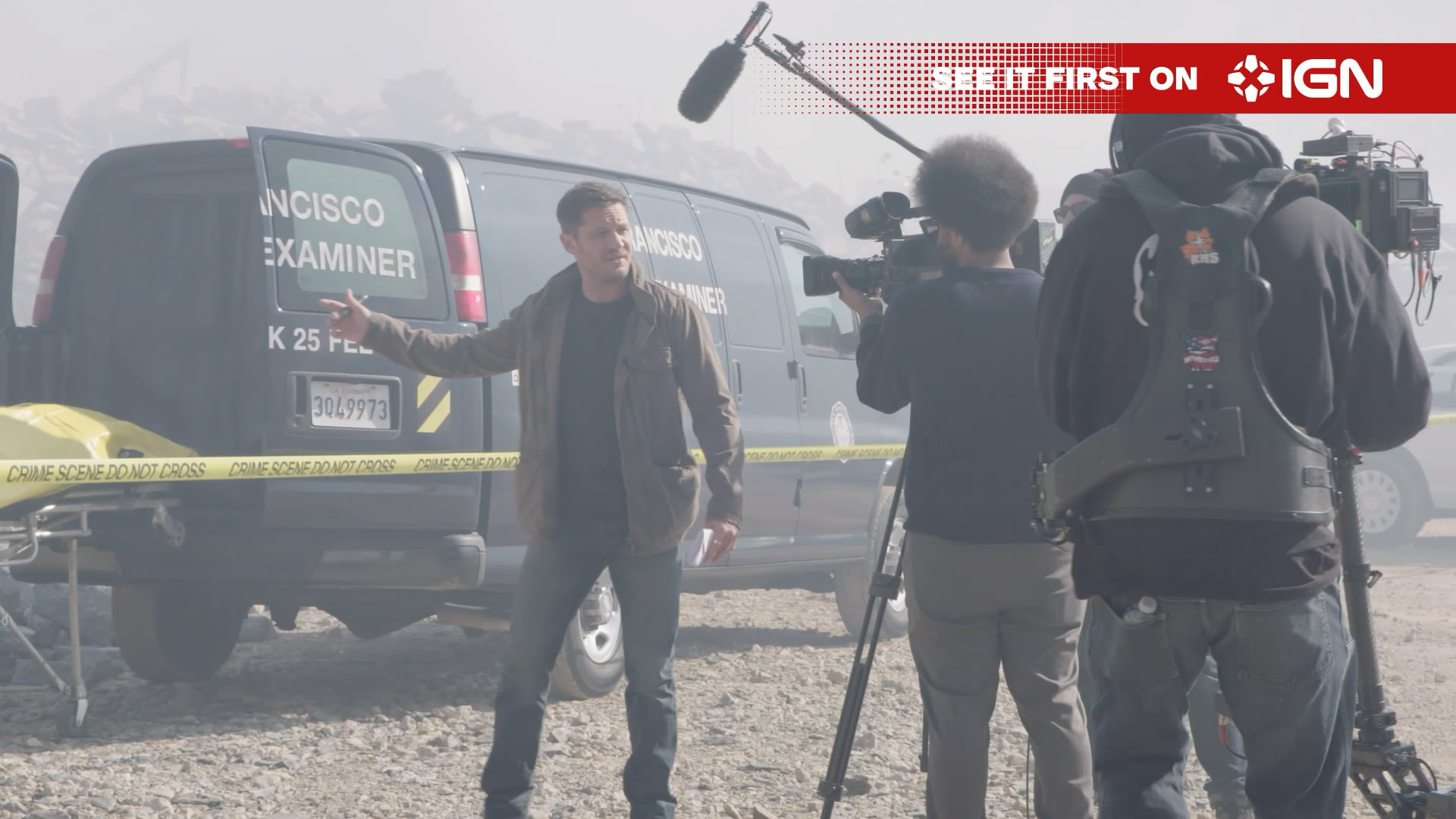 毒液,这个寄生于艾迪·布洛克(Eddie Brock)体内的危险共生体是这部影片的主角之一,但拍摄现场其实并没有它的实体形象。不过这个漫威经典形象确实一直在片场暗中观察——每一位剧组人员的帽衫上都印着电影版毒液的Logo。