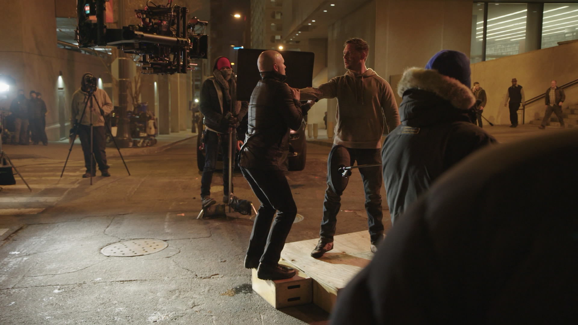 这个片段看似简单,但剧组为此做了非常多的准备。一电车的工作人员首先出发,为实际拍摄做准备,而主要的拍摄人员在一辆面包车中紧跟在电车后面,导演鲁本·弗雷斯彻(Ruben Fleischer)一整个早上就一直待在这辆车中。