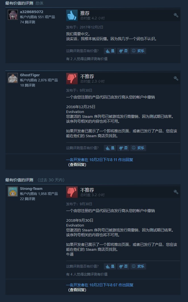 《演化》Steam上不支持中文,2017年2月发售,好评率为57%,玩家评价比较一般。