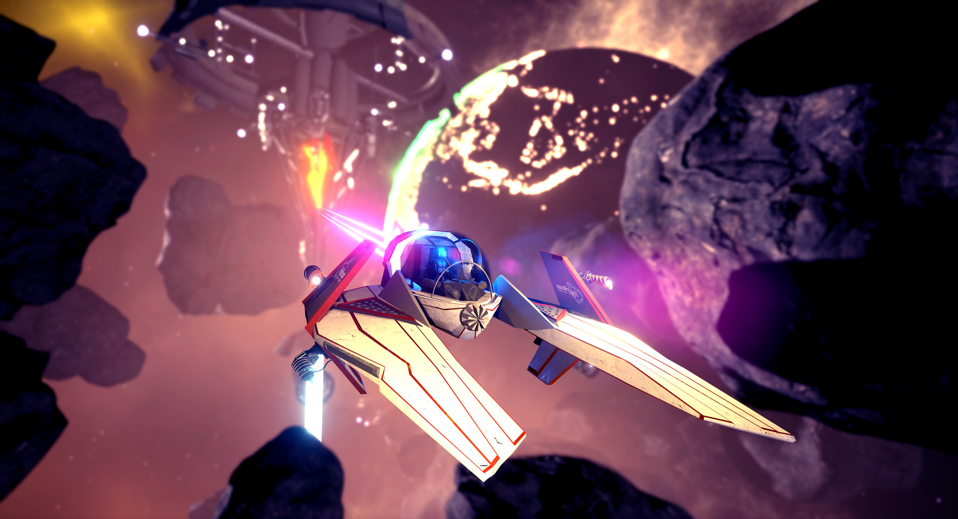 游戏采用快节奏的多人对战模式,在充满神秘色彩的宇宙中,玩家需要驾驶酷炫的飞船在陨石中穿梭,使用特殊技能躲避敌人的攻击,并将其摧毁。