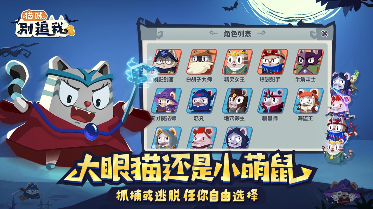 《猫咪别追我》是一款2D卡通画面的休闲竞技手游。玩家可以选择扮演猫或鼠儿,猫个体强数量少,鼠儿个体弱数量多,在游戏中围绕关键物奶酪的争夺进行激烈对抗。游戏还设置了1v3非对称和3v3公平对战两种模式。