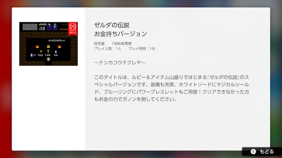 “任天堂Switch在线”服务9月底刚刚开通,在10月10日的《FC Nintendo Switch Online》更新中,早先预定每月3款免费FC游戏正常上线,不过玩家意外的发现本次更新竟然多了一款游戏《塞尔达传说特别版》,而关于本作之前任天堂从没有提及过。