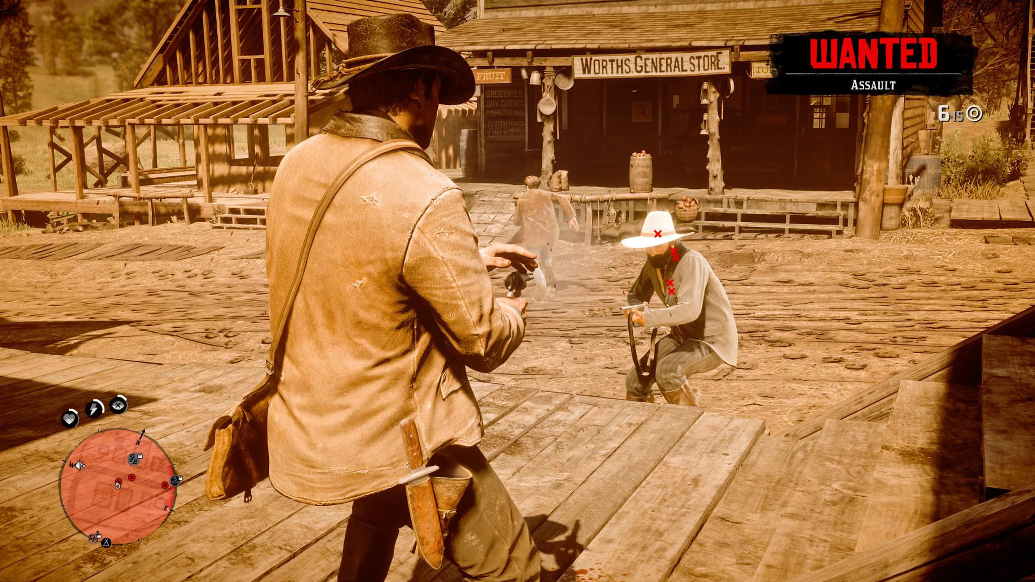 双动式左轮手枪的射速较高,适合用于在马背上进行移动射击。如果您一只手上拿着一盏提灯或提着一只小动物,可以考虑使用削短型霰弹枪;与其他的单手武器相比,这把枪在近距离的杀伤力更强。捕猎步枪非常适合用于猎杀小型猎物,因为与装有更大规格霰弹的枪械相比,它没有那么容易使猎物的皮毛和肉的品质受损。
