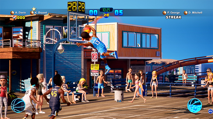 此外,本作将推出超过100个标志性动作,包括迈克尔-乔丹的罚球线起跳灌篮,乔治-格文的冰人挑篮和勒布朗-詹姆斯的单人空中接力。同时,本作将会提供众多全新的自定义物品,包括夹克,衬衣,裤子,短裤和球鞋。此外,NBA 2K欢乐竞技场2的音乐由众多顶级艺术家的授权音轨组成,包括Run The Jewels, Oddisee 和 DJ Premier.