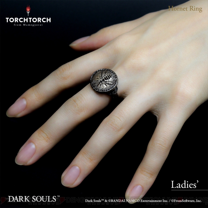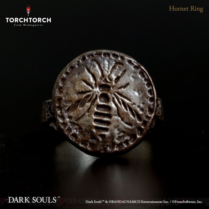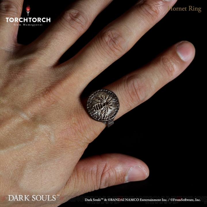 近日TORCH TORCH宣布与万代南梦宫合作,将《黑暗之魂》系列中的“黄蜂戒指”制作成实物周边,2019年2月发售,价格17500日元+税。该戒指使用材料为银925,包含男女用共9种尺寸。