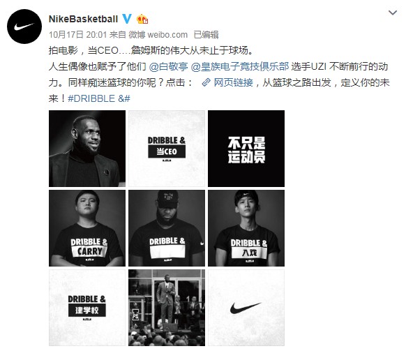 昨天,@NikeBasketball官方发布了一篇微博,公布了新签约的三位代言人,分别是詹姆斯、白敬亭和UZI。UZI也成为了NIKE在全球电竞领域签约的第一位选手。