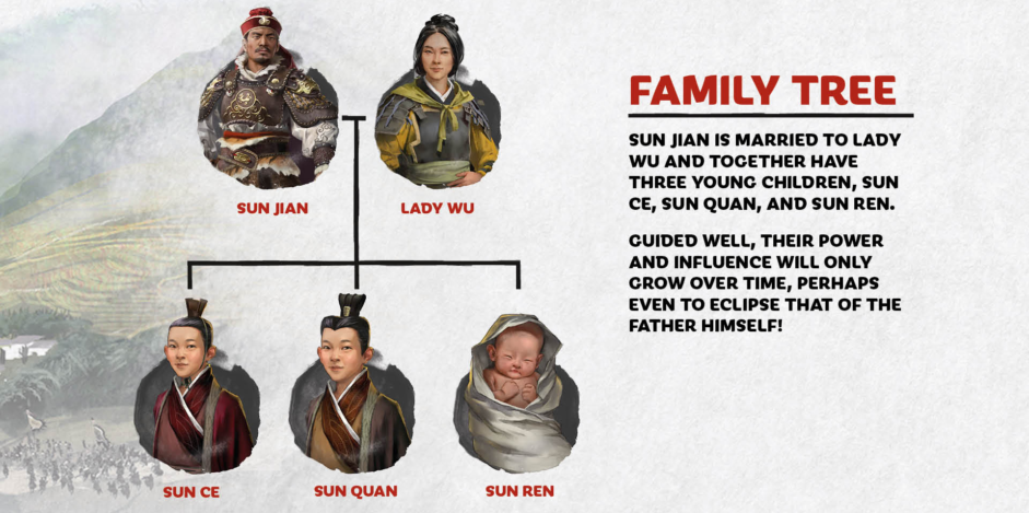 《全战》系列喜闻乐见的系统。孙坚和吴夫人育有三个孩子,孙策,孙权和孙仁。这次,对于幼子如果引导得当,他们的权威和影响力会随时间增长,甚至可能超过他们的父亲。我们都知道,孙坚在获得玉玺之后,便多面临敌,面对这样的情况,膝下子嗣尚幼,最佳选择确实是尽快回到自己的根据地。游戏中,使用孙坚的玩家,将面临的第一个挑战就是,安全地回到根据地,将历史改写为对自己对家族最有利的情况。(PS.等孙仁长大了,会让她和谁联姻呢)