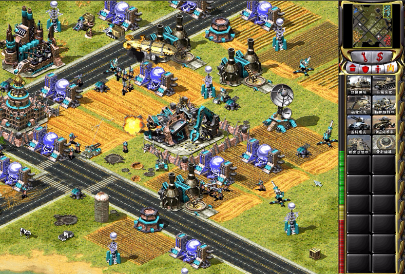 和现实相照应的特色兵种是《红警2》的一大亮点。你可以在「苏军」和「盟军」中做出选择,而各个阵营的「国家」都有自己的特色兵种,法国的巨炮,德国的坦克杀手,每一个都让人津津乐道。随着尤里的复仇 DLC 发布,尤里阵营的加入和全新的兵种让游戏的乐趣又增加了许多。