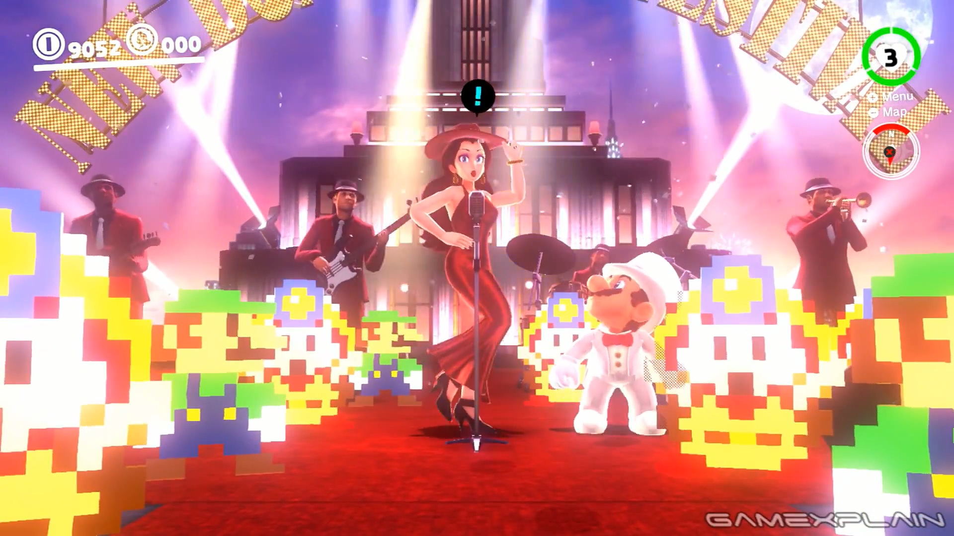 为了庆祝《超级马里奥:奥德赛》发售一周年,任天堂为这款游戏的“都市之国”顶楼的派对设置了小节目。从10月27日开始一直到11月7日,在此期间内,玩家只要到达这里,就能用“撞地”动作发现隐藏在地板中的8位像素版路易和奇诺比奥角色形象。