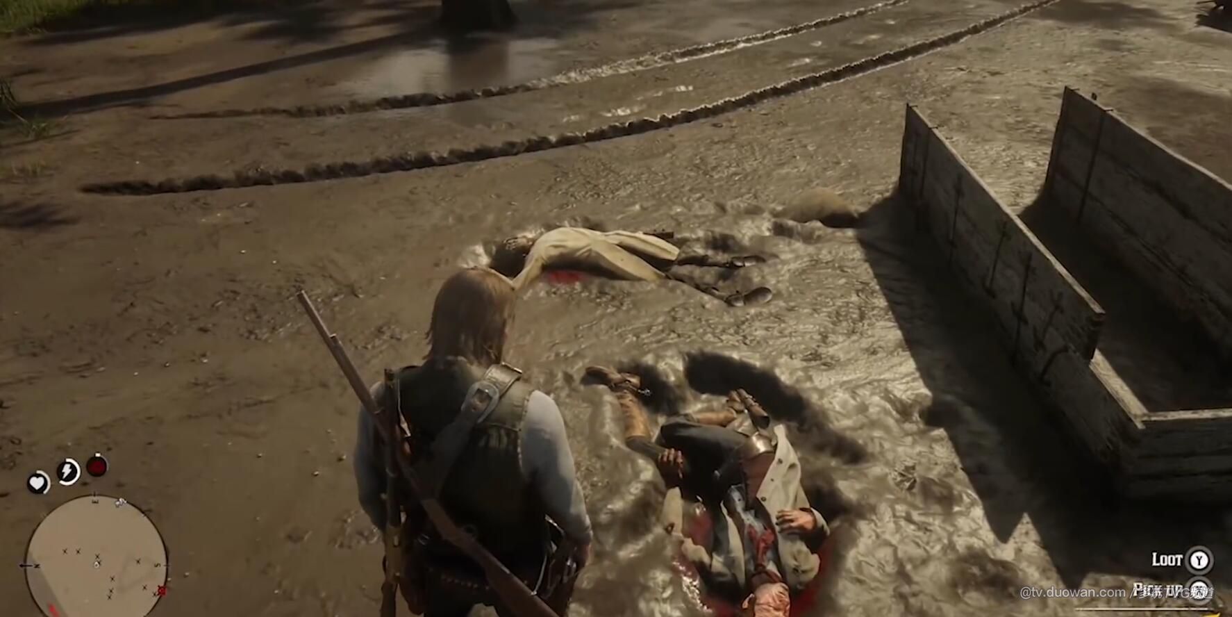 当亚瑟过多的摔倒或者是在泥泞中战斗时,污渍会越来越多,而跳进水中或者是站在雨里,都会清洗掉这些污垢。而在玩家搬运尸体的时候,则会在亚瑟的衣服上沾到血迹。