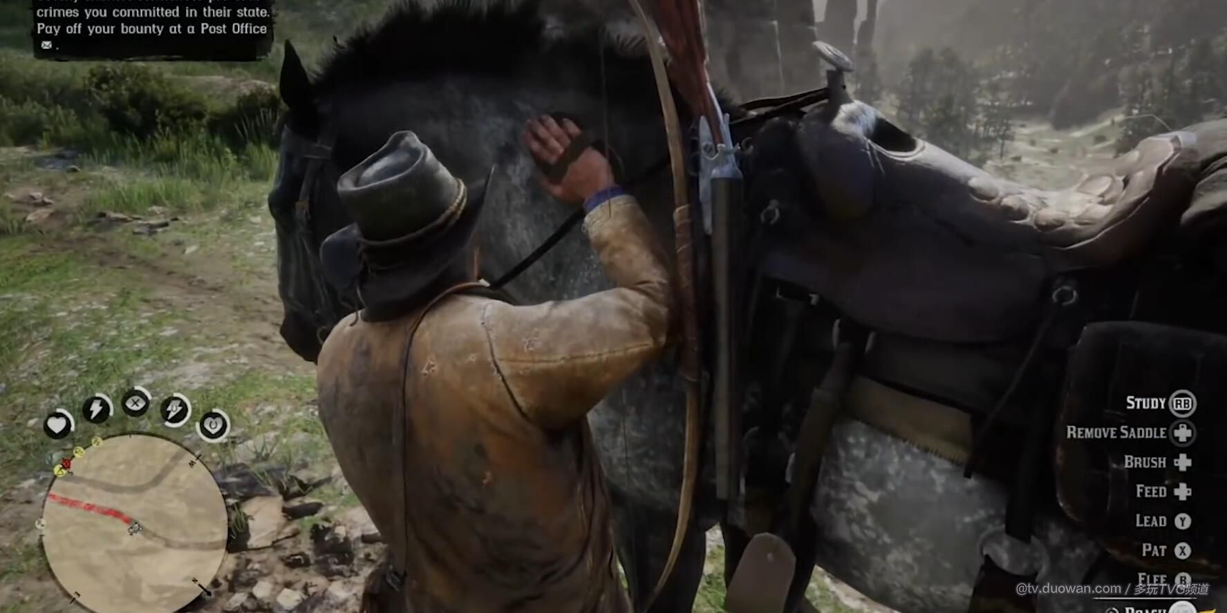 游戏中需要用马刷定时清理马的灰尘,在清理的时候能看到马上的尘埃被刷下去。而走在泥泞之中,也会让马腿变得更脏,当然变脏后还是可以踏进水中清洗干净。