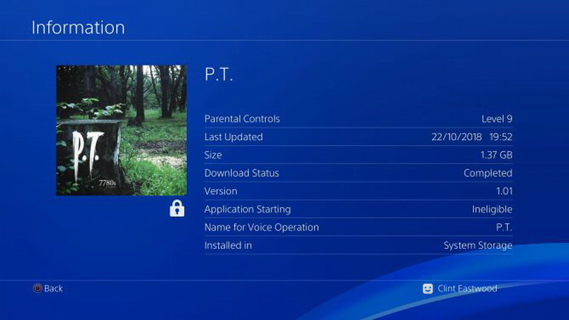 但就在昨天,有玩家表示他在PS4的内容保存库中下载过的《P.T.》竟然更新了1.01版本。虽然无法打开运行,却让不少玩家浮想联翩:有人认为科乐美或将重启《寂静岭》新作,也有人认为这是一个万圣节玩笑。